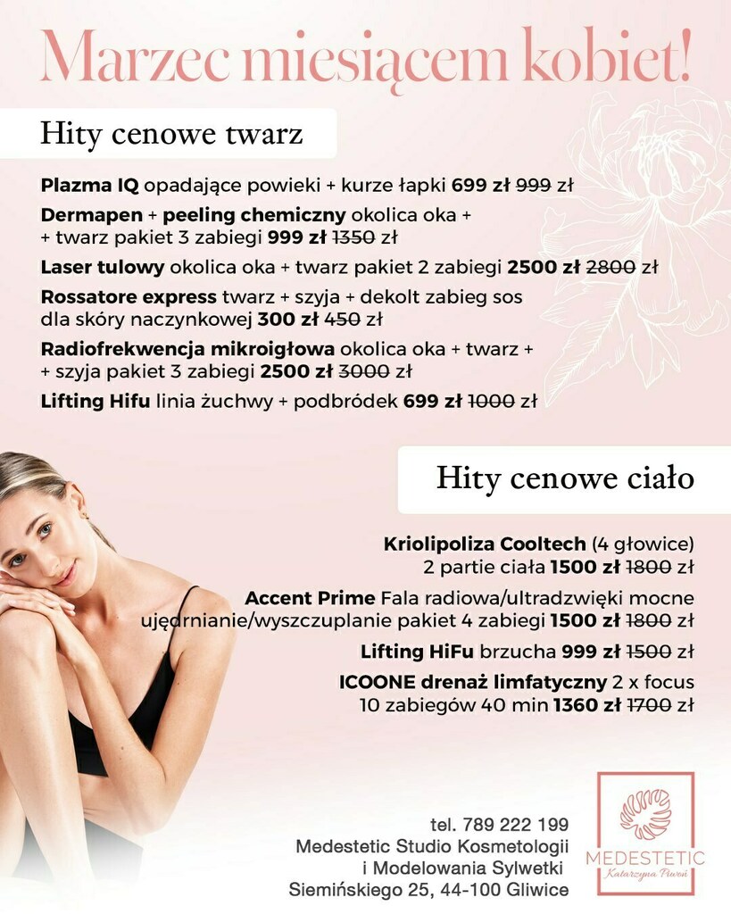 Z tej okazji przez cały marzec przygotowaliśmy specjalne ceny na nasze topowe zabiegi na twarz i ciało!